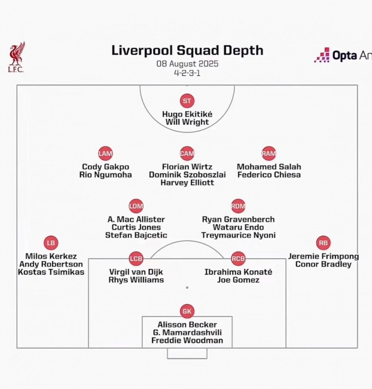 围绕高大中轴建队,利物浦既有经验丰富的技术型球员(麦卡利斯特&萨拉赫)来提供控制力,也有能够提供变速和变奏的年轻球员(科尔克兹和弗林蓬),完全具备搭建一个立体化和多元素战术体系的条件。自执教费耶诺德时开始,斯洛特便形成了杂糅百家的战术理念,利物浦已经在冠军赛季中展现出了他们的可变性和适应力。随着多名符合荷兰人要求的新援扎堆加盟,红军或将在战术层面交出令人惊喜的答卷,这在刚刚结束的社区盾中已经显现端倪。